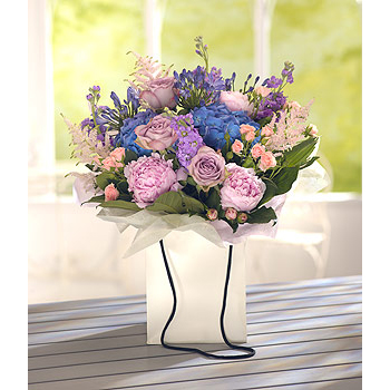 Get a WOW with this fragrant hand tied bouquet filled with all the summer favourites. This gift bag collection includes Hydrangea, Agapanthus, Roses, Peonies, Astilbe and Stocks.
