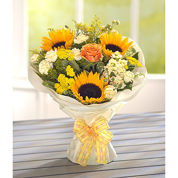 A bright, summery sunshine collection in yellow & cream featuring Sunflowers, Carnations, Stocks, Solidaster & Roses.