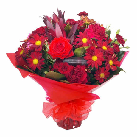 Scorpios are strong, loyal and passionate. So, what better way to show you care than with this beautiful hand-tied bouquet in strong reds featuring Roses, Carnations and Chrysanthemums beautifully packaged in an aquapack for instant display.