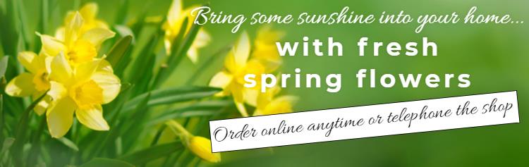 Beautiful Spring fresh flowers to brighten any occasion, you can order from our range or Spring flowers online anytime or by calling the shop during opening hours 6 days a week.
